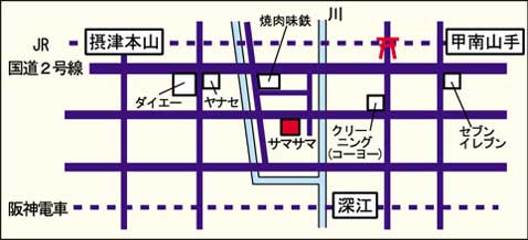 JR神戸線摂津本山駅・甲南山手駅から徒歩約12分、阪神本線深江駅から徒歩約10分